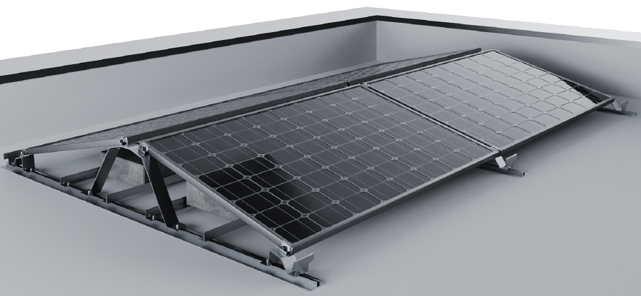 Ten typ konstrukcji jest przeznaczony wyłącznie do montażu poziomego na dachach płaskich i nie jest odpowiedni do dachów skośnych.